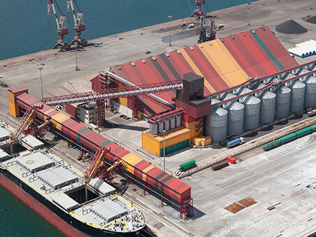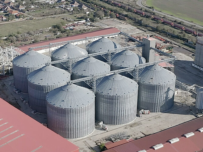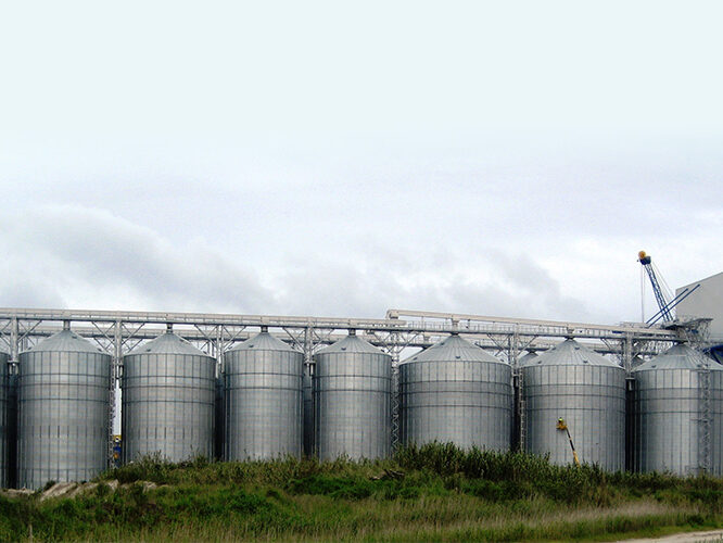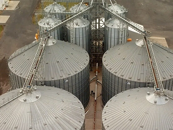 Location: Carani, Romania. N. silos: 9 x 20.300 m³/silo. Capacity: 182,700 m³. Product: Sunflower